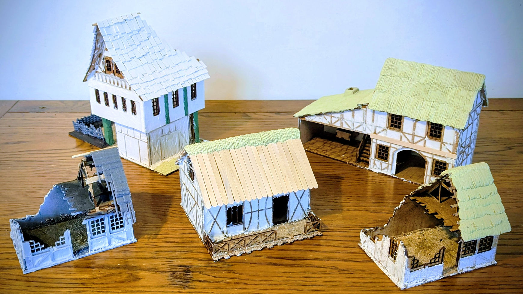 Several months ago, I was gifted a set of MDF medieval houses by my good friend Doug.